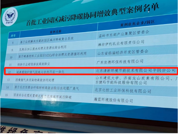 会上发布了首批工业园区减污降碳协同增效典型案例,清新环境“炭素煅烧炉烟气脱硫与余热回收一体化项目 ”(以下简称“丰源炭素项目”)榜上有名。据悉,该评价项目由生态环境部对外合作与交流中心组织专家对申报案例进行形式审核、函审及会审答辩,共评出15个典型案例。