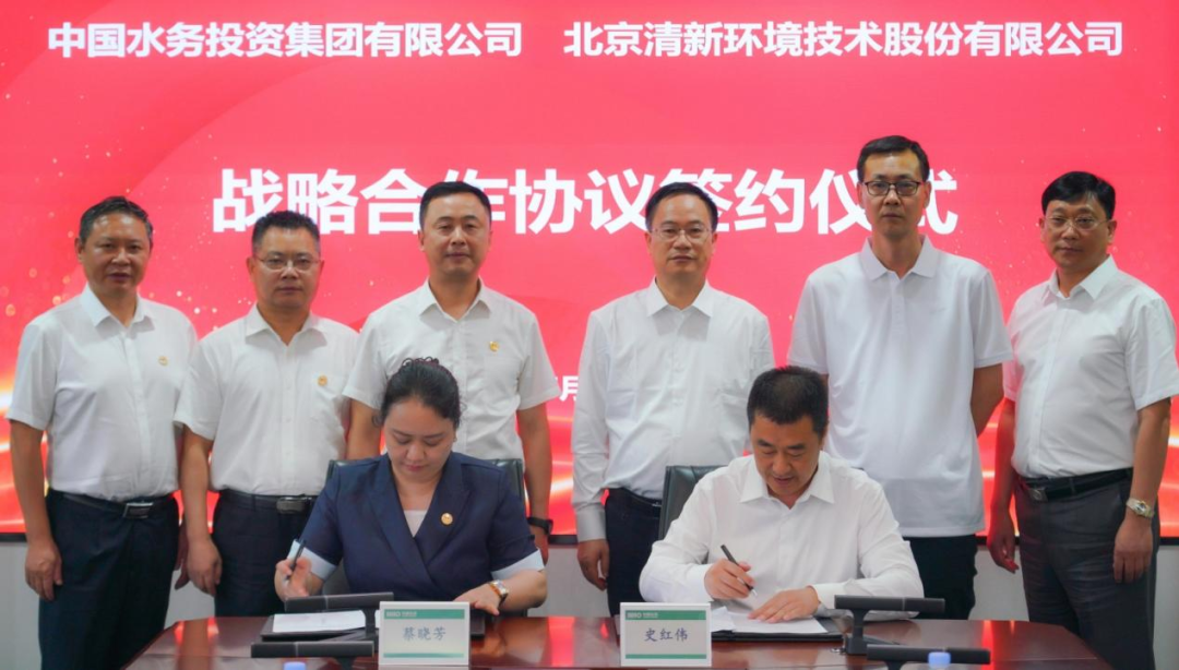 7月1日,清新环境与中国水务投资集团有限公司(以下简称“中国水务”)就深化合作进行会谈交流,并签署了战略合作协议。中国水务副总经理史红伟、清新环境副总裁蔡晓芳代表双方进行签约。中国水务党委副书记、总经理何刚信,清新环境党委书记、董事长邹艾艾,清新环境党委委员、四川发展国润水务投资有限公司党委书记、董事长杜宜波等出席会议。