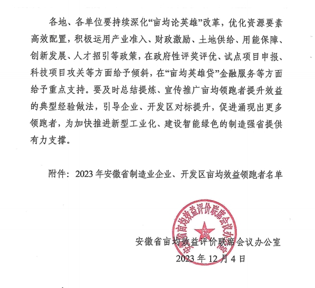 宣城富旺将始终坚持高质量发展新理念,从“重视数量”转向“量质并举”、从“要素驱动”转向“创新驱动”、从“规模扩张”转向“提质增效”,不断加强对亩均效益评价结果的运用,为推动安徽经济发展贡献“清新力量”。