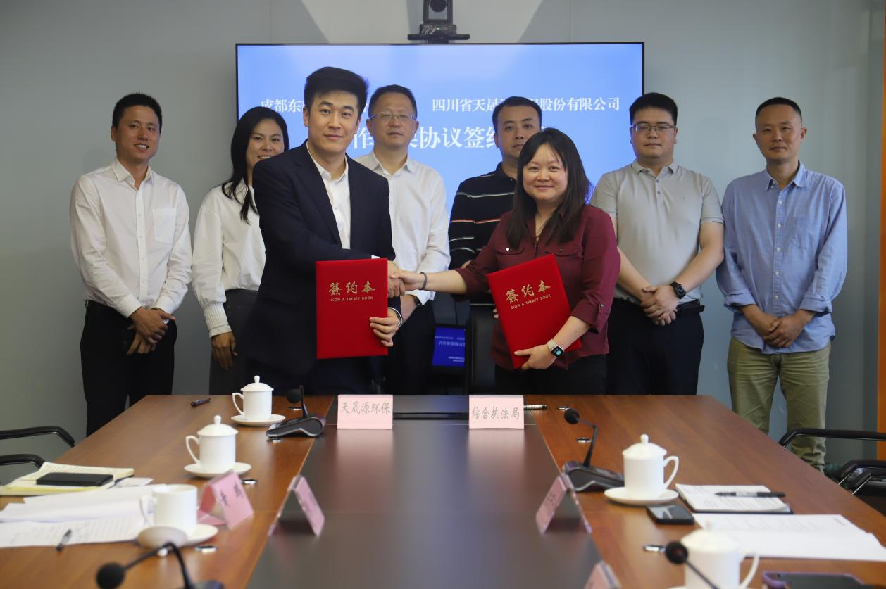 环保护航谋发展,政企协同谱新篇。4月23日,成都东部新区综合执法局与清新环境子公司四川省天晟源环保股份有限公司(简称“天晟源环保”)签订合作框架协议。成都东部新区综合执法局副局长杨涛与天晟源环保党支部书记、董事长李大有代表双方进行签约。
