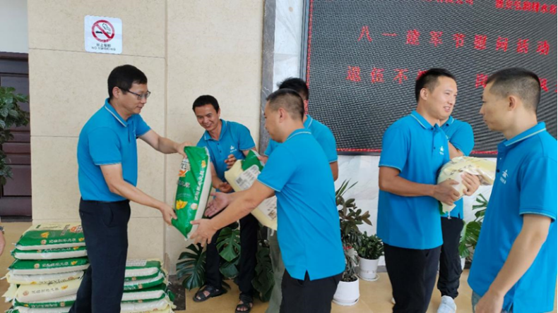 遂宁鑫宇公司组织开展“拥军优属暖人心,八一慰问送关怀”专题活动。公司领导仔细询问了退役军人及军人家属职工的生活情况和身体状况,认真聆听他们对供公司的意见和建议,感谢他们为公司作出的贡献。
